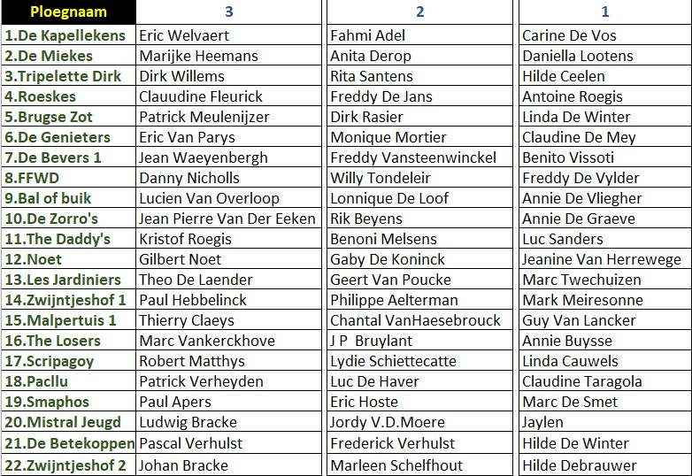 We spelen met max. 22 vaste tripletten